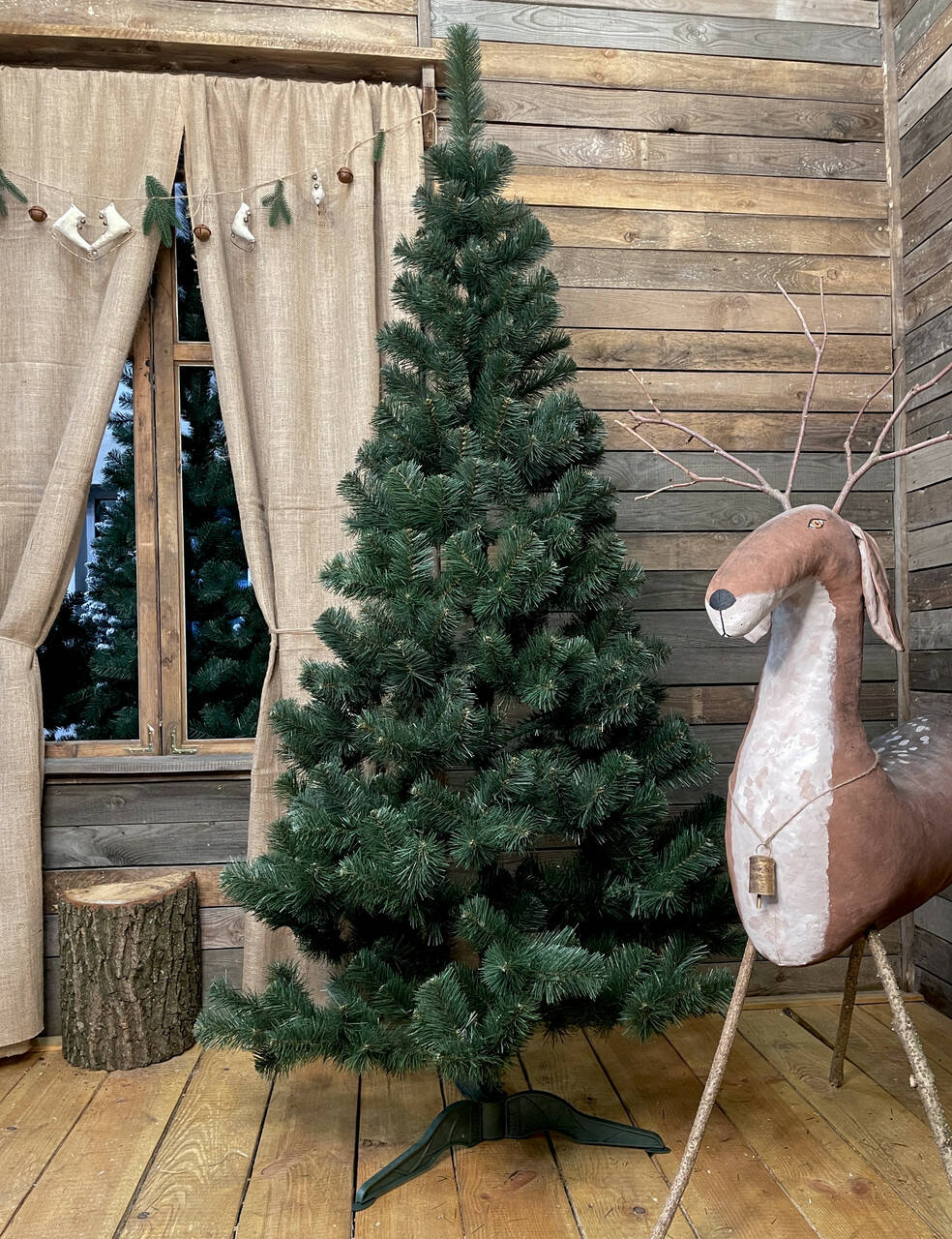 Штучна новорічна ялинка звичайна - чудовий і не дорогий варіант для святкування Різдва та Нового року. Виготовлена з якісної плівки ПВХ, має природний зелений колір гілочок. Ялинка складається з двох частин. Її легко встановити за допомогою стійкої пластикової підставки. Висота ялинки з підставкою - 200 см.